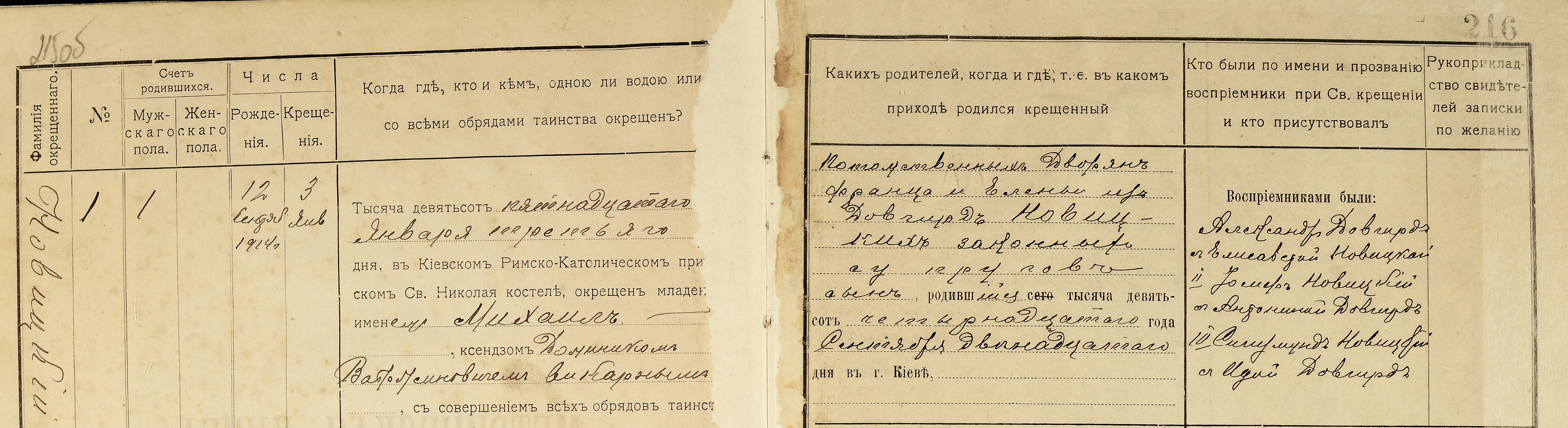 12. września 1914, a ochrzczony został 15. stycznia 1915 w kościele św. Mikołaja w Kijowie.