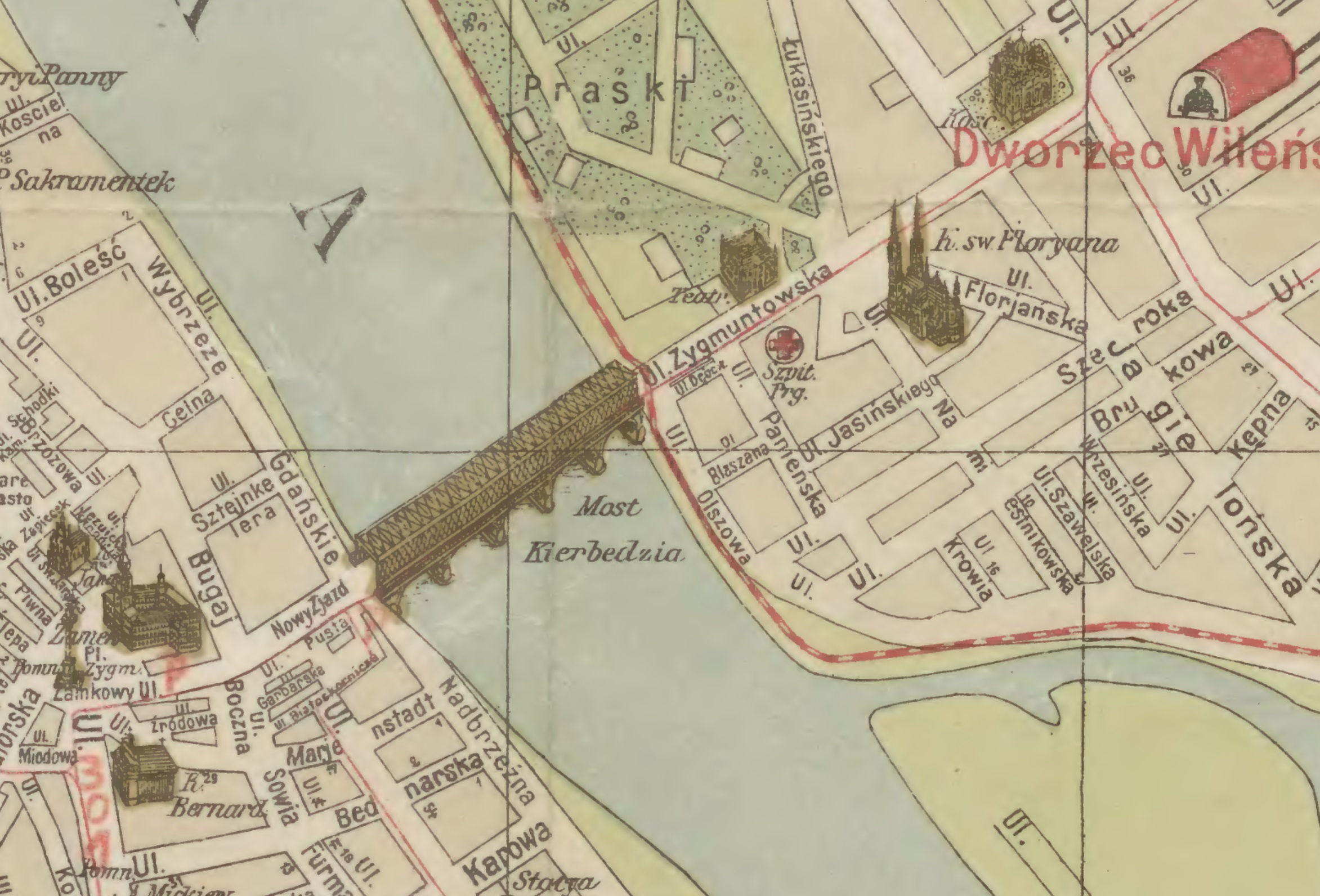 dokąd szli z mieszkania na ulicy Nowy Zjazd przez most Kierbedzia ulicą Zygmuntowską do ulicy Jagielońskiej.