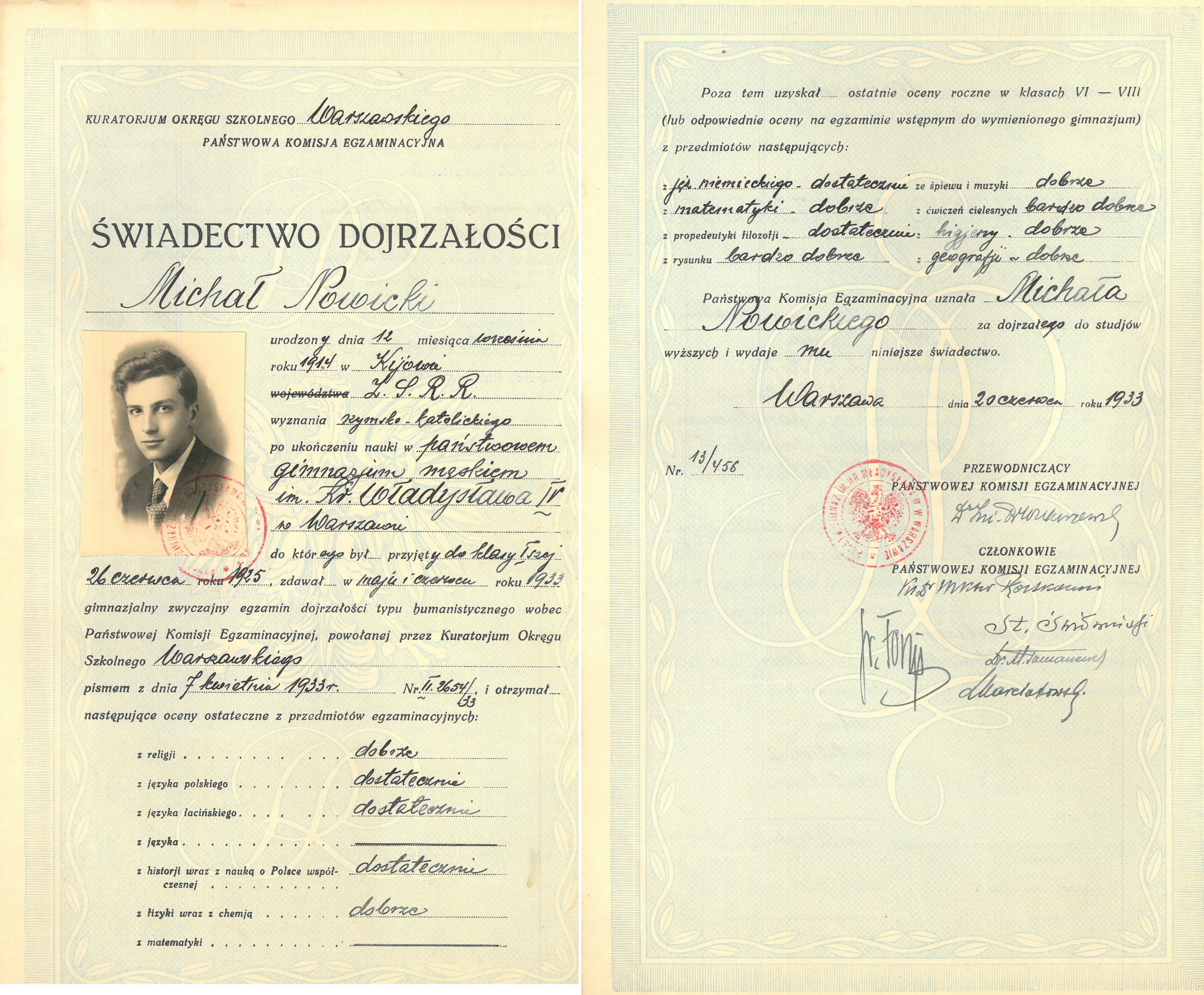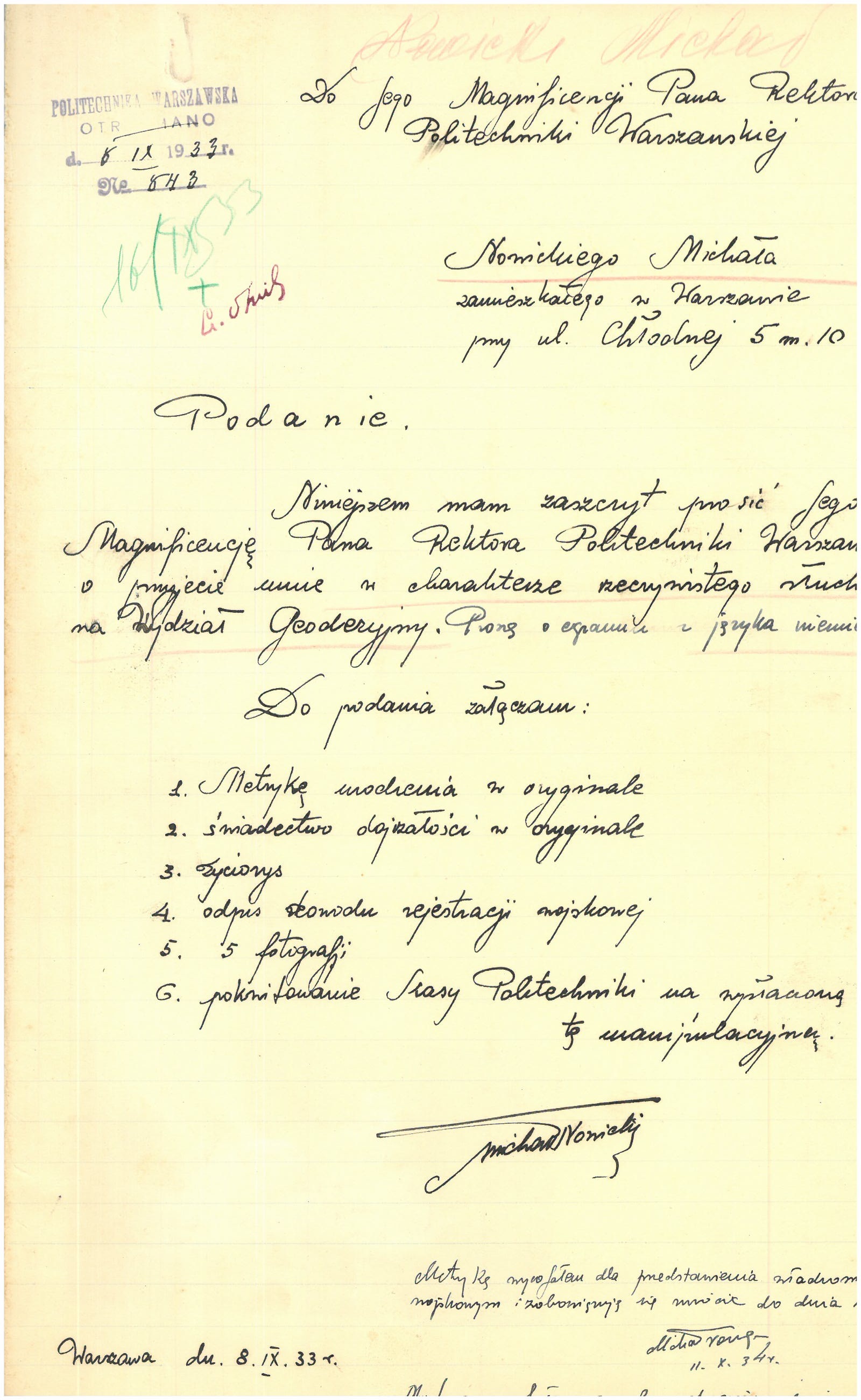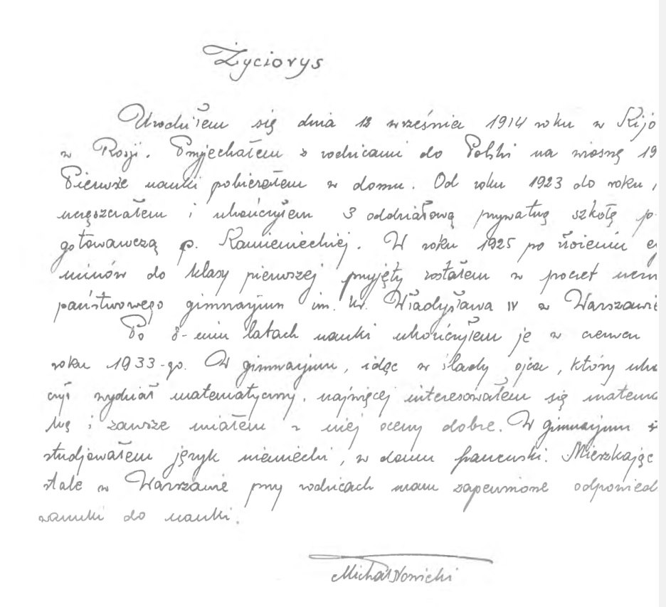 Po jakimś czasie rodzina przeprowadziła się na ulicę Chłodną, a Michał zdał maturę i dostał się w 1933 na Wydział Geodezji Politechniki Warszawskiej.