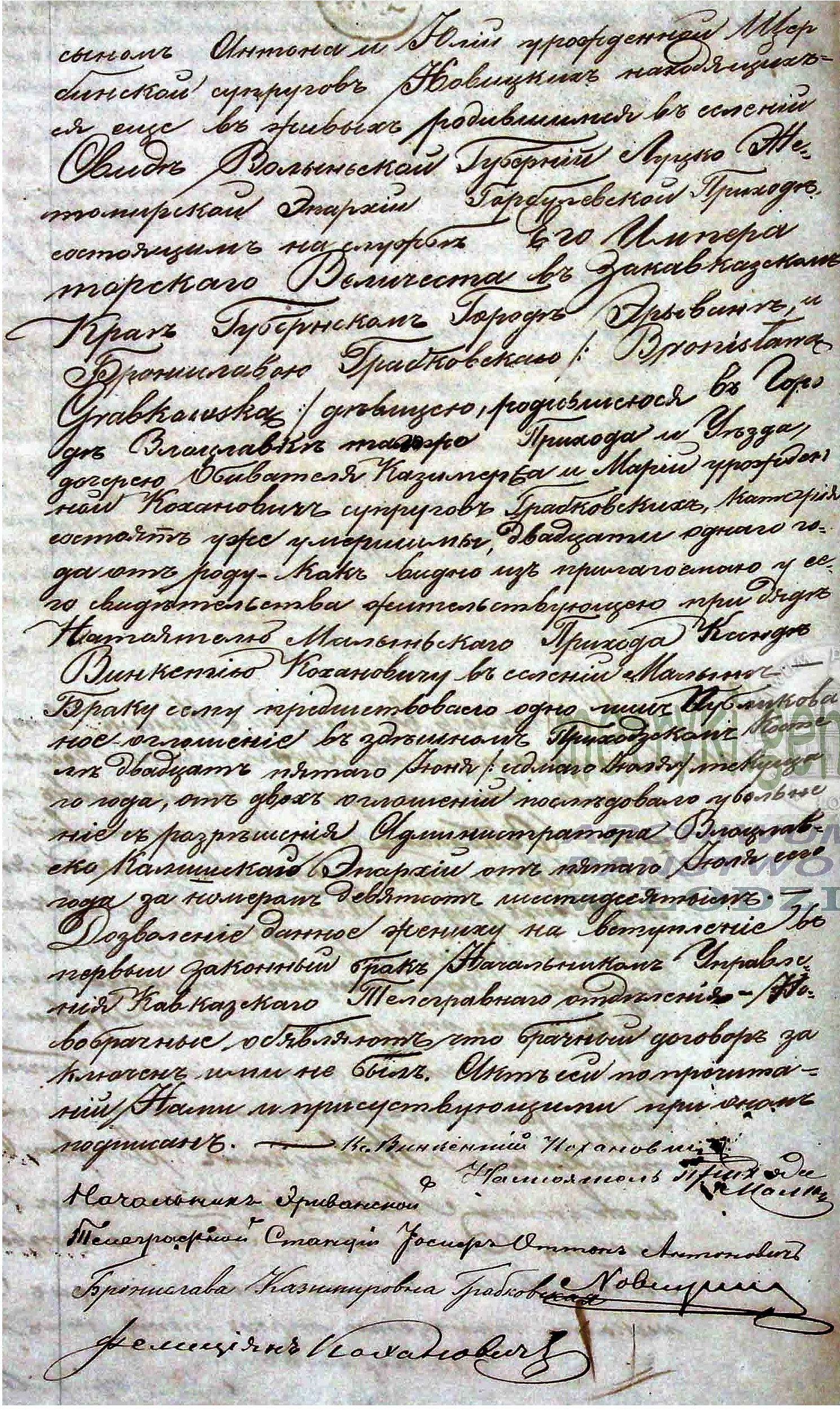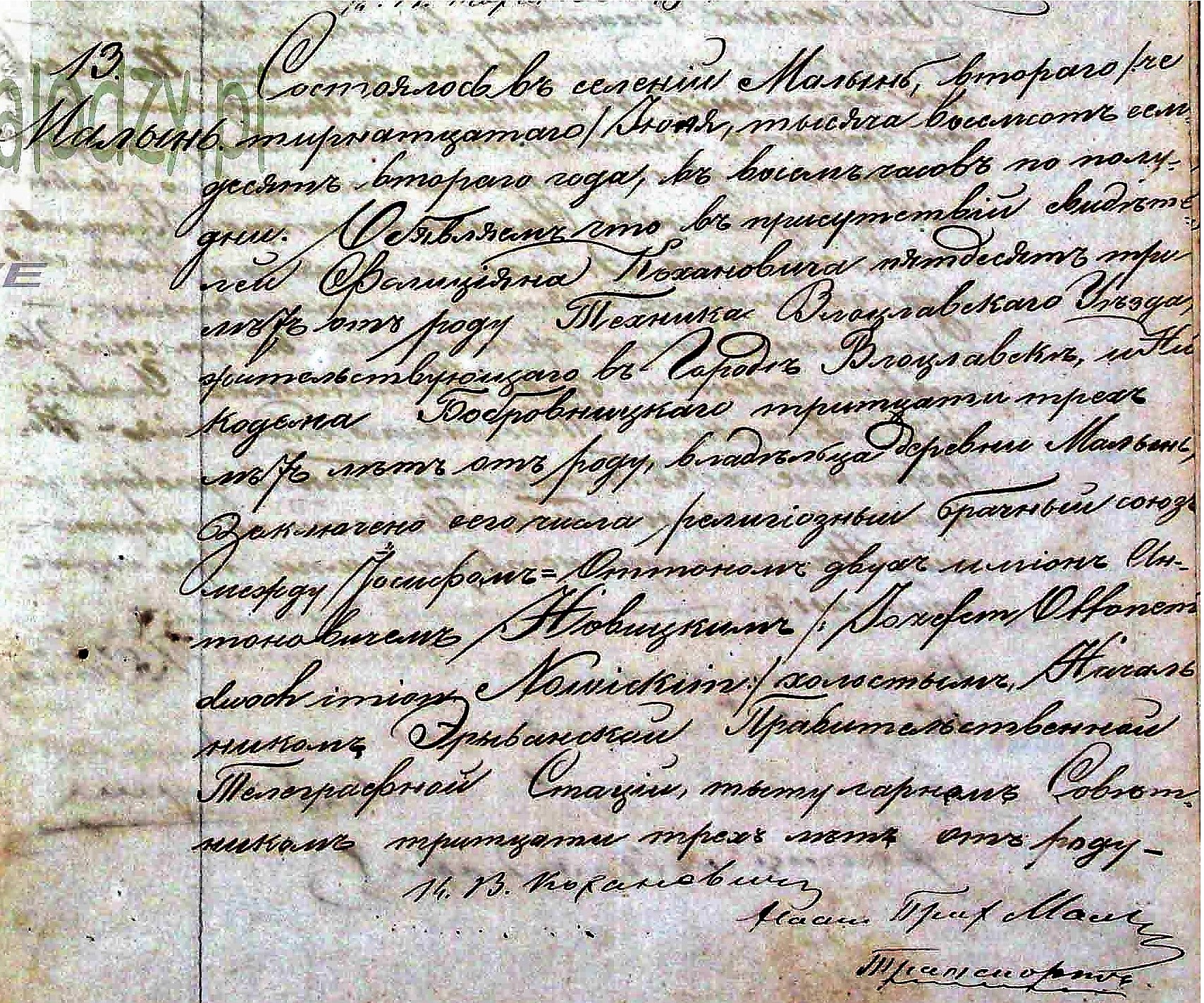aktem ślubu z Bronisławą Grabkowską, córką Kazimierza i Marii z domu Kochanowicz (dokończenie na następnej stronie).