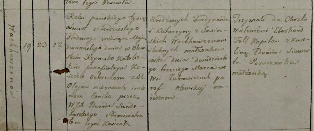 1.1.1. Emilia, ich córka urodzona 23 III 1847 w Zabrowiczach parafii olewskiej, gdzie ochrzczona 12 V 1847, według metryki