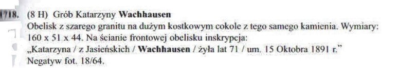 jako urzędnik bez czynu (stopnia) w Izbie Skarbowej i tamże jako buchalter w 1899. Nagrobek Katarzyny jest opisany w książce