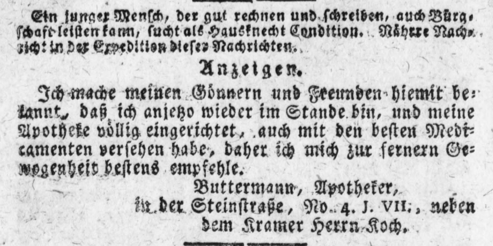 Z archiwów niemieckich: Hamburger_Nachrichten_1801_07_04NowaAptekaButtermanna-z.jpg